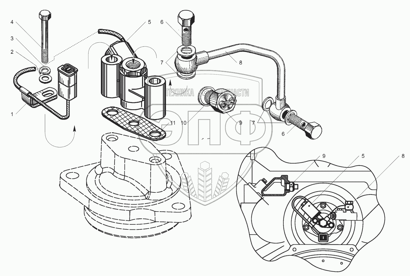 Каталог запасных частей к технике: ЯМЗ-850.10. Клапан электромагнитный привода вентилятора
