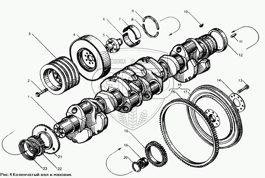 Каталог запасных частей к технике: ЯМЗ-850. Вал коленчатый и маховик