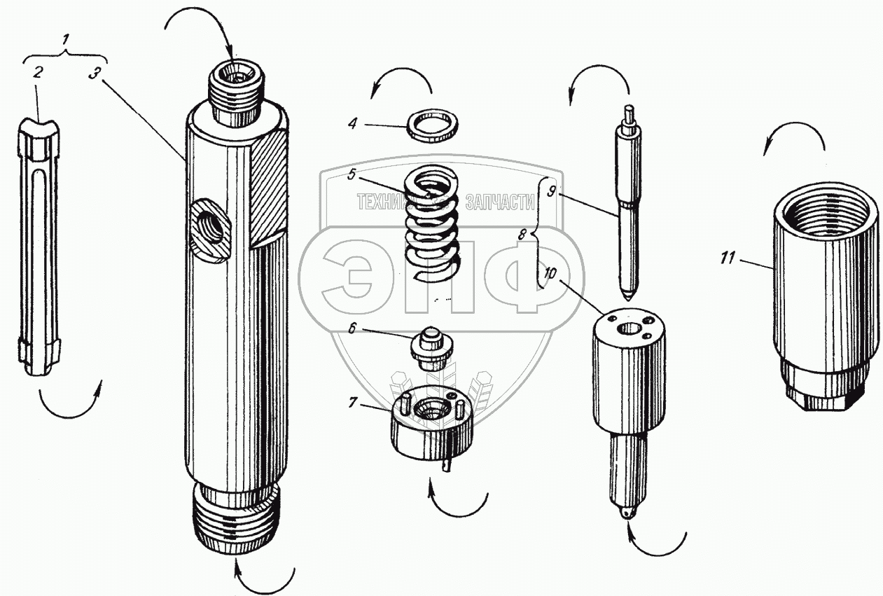 Каталог запасных частей к технике: ЯЗДА ТНВД-136, 179. Форсунка 51.1112010-21