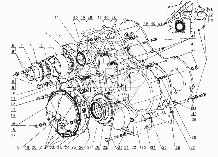 Каталог запасных частей к технике: Yuchai YC4108C (D7400). D7200-1002030 Части корпуса шестерни