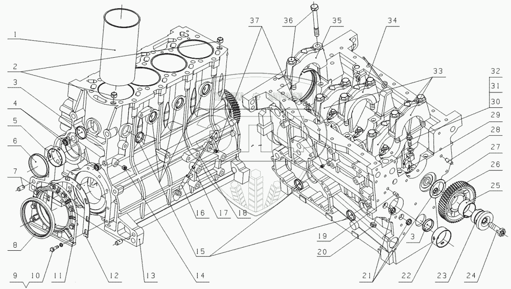 Каталог запасных частей к технике: Yuchai YC4G180-20 (G0803). G05LA-1002000 Cylinder block assembly