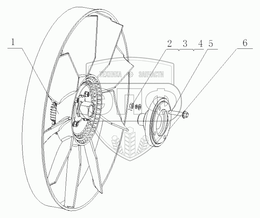 Каталог запасных частей к технике: Yuchai YC4G190N-50. G2S0B-1308000/01 Fan Assembly