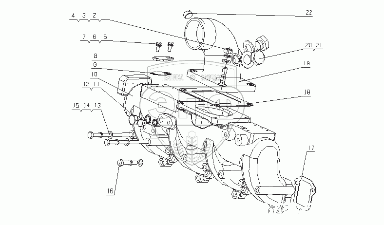 Каталог запасных частей к технике: Yuchai YC4G220-20 (G20JA). G20JA-1008100 Часть впускной трубы
