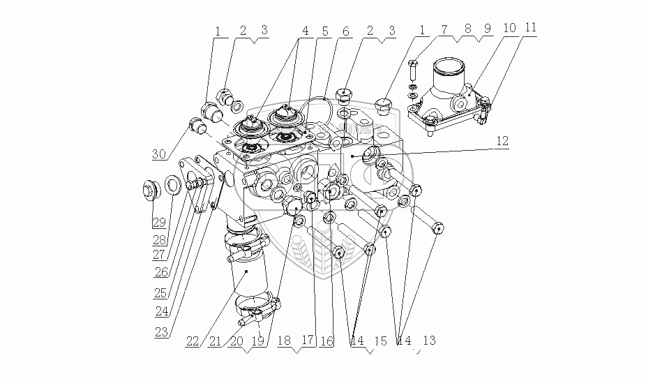 Каталог запасных частей к технике: Yuchai YC6G240-20 (G52MA). G47XA-1306000 Термостат