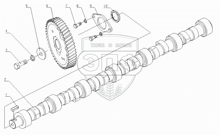 Каталог запасных частей к технике: Yuchai YC6J225N-52. J3C00-1006000/01 Camshaft Assembly