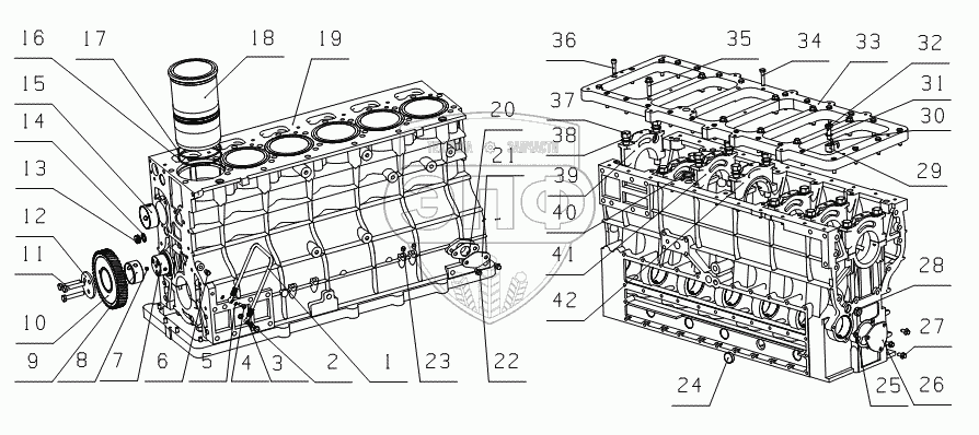 Каталог запасных частей к технике: Yuchai YC6J245-30 (J61LA). J5600-1002000 Блок цилиндров