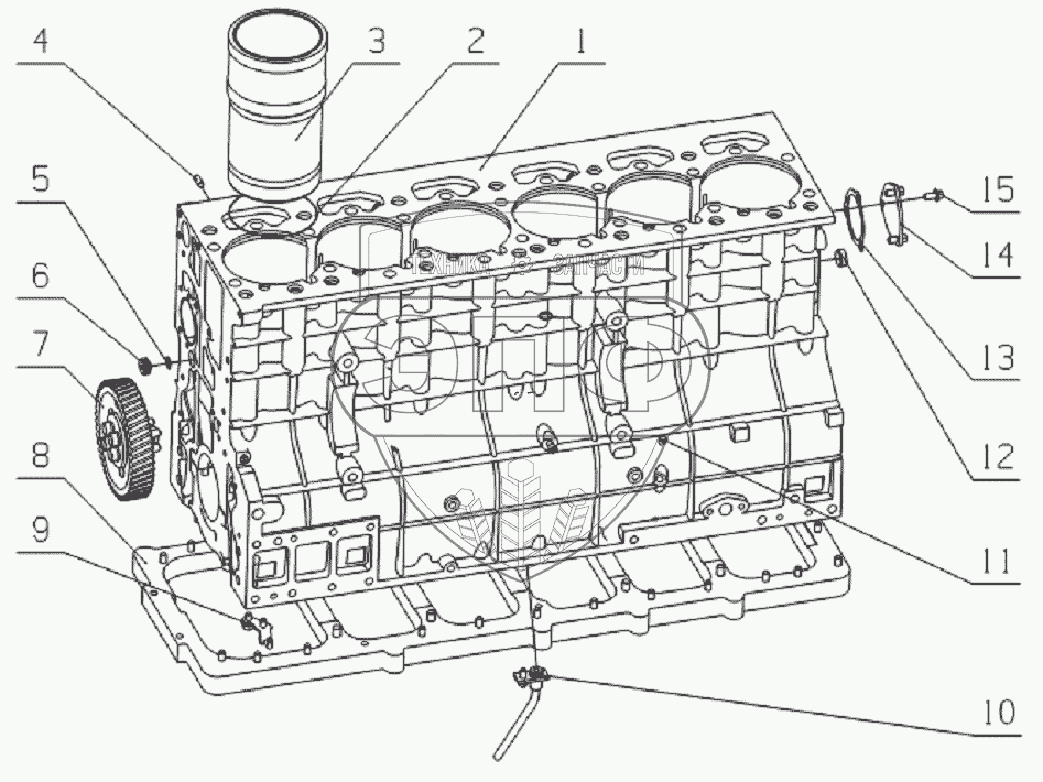 Каталог запасных частей к технике: Yuchai YC6L260-30. L37LA-1002000 Cylinder block assembly