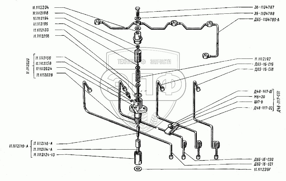 Каталог запасных частей к технике: ЮМЗ Д-65. Форсунка и топливопроводы