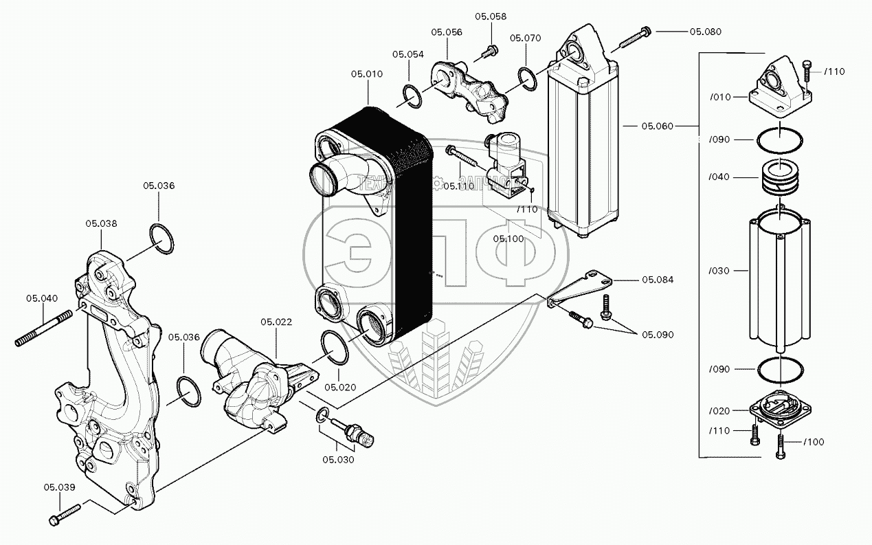 Каталог запасных частей к технике: ZF КПП 16S2221TD. ТЕПЛООБМЕННИК