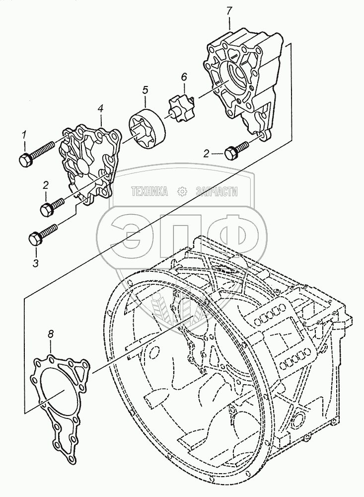 Каталог запасных частей к технике: ZF КПП ZF 16S151. Установка насоса