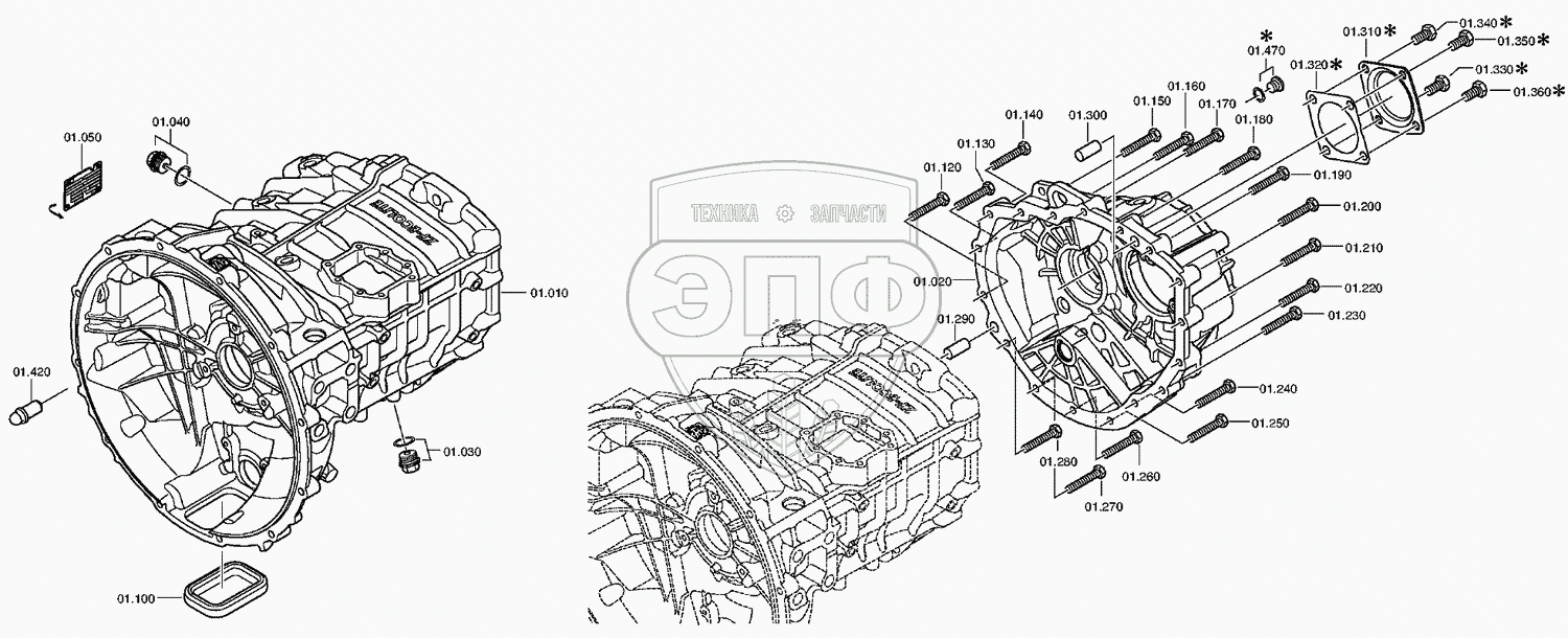 Каталог запасных частей к технике: ZF КПП ZF 6S1000TO. CLUTCH HOUSING