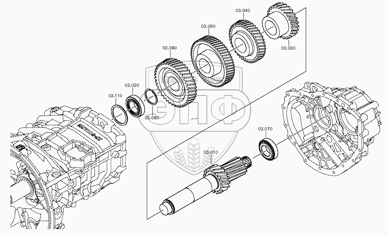 Каталог запасных частей к технике: ZF КПП ZF 6S1000TO. Вал промежуточный