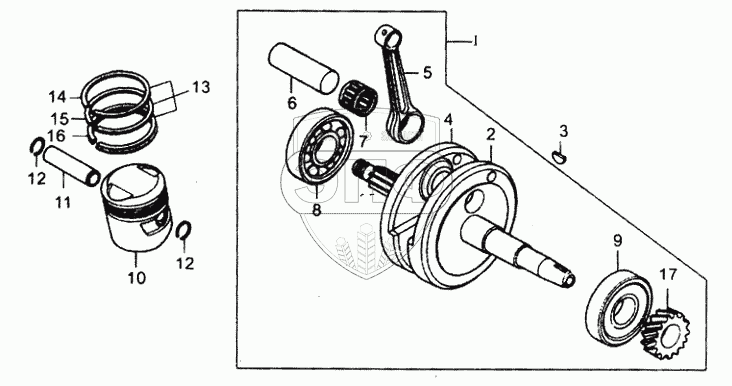 Каталог запасных частей к технике: ЗиД Двигатель 163FML-2. Коленчатый вал и поршень
