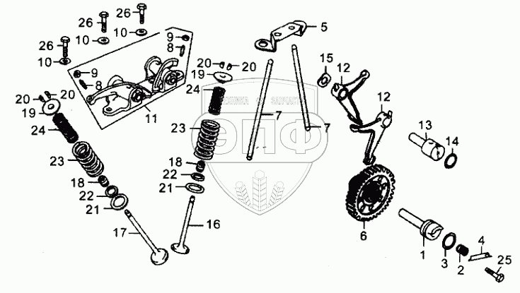Каталог запасных частей к технике: ЗиД Двигатель 163FML-2. Распределительный вал и клапаны