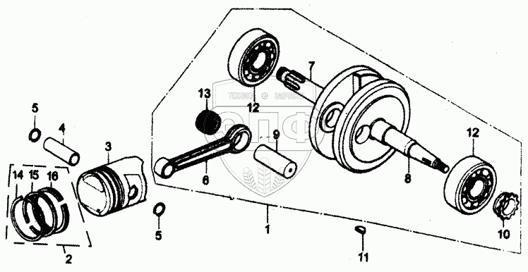 Каталог запасных частей к технике: ЗиД Двигатель 1P39FMB-В. Коленчатый вал и поршень