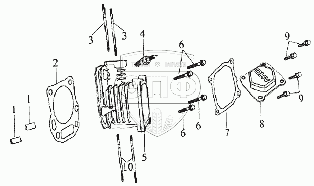 Каталог запасных частей к технике: ЗиД Двигатель 1P70FV-C. Головка цилиндра