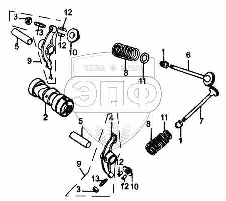 Каталог запасных частей к технике: ЗиД Двигатель 1Р39FMB-С. Кулачковый вал и клапаны