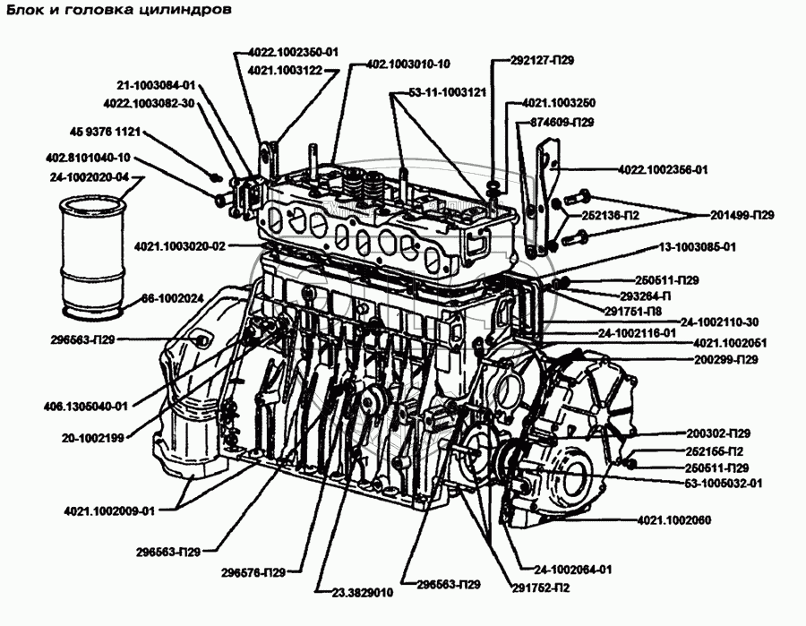 Каталог запасных частей к технике: ЗМЗ-402.10. Блок и головка цилиндров
