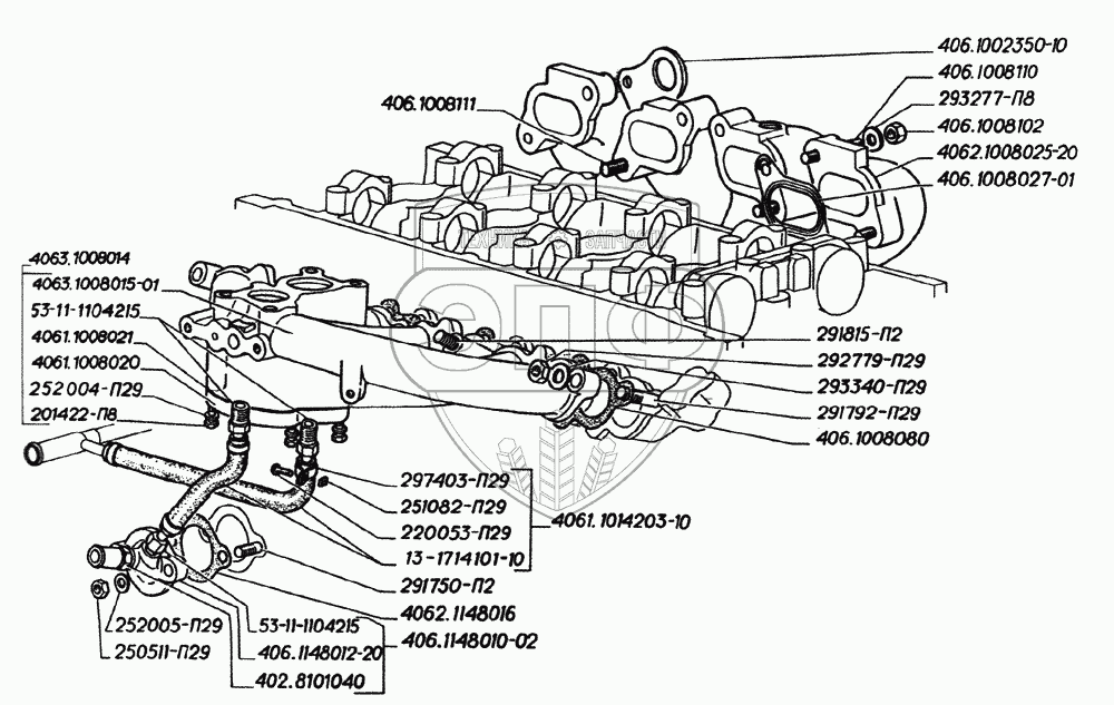 Каталог запасных частей к технике: ЗМЗ-402. Газопровод двигателей ЗМЗ-406