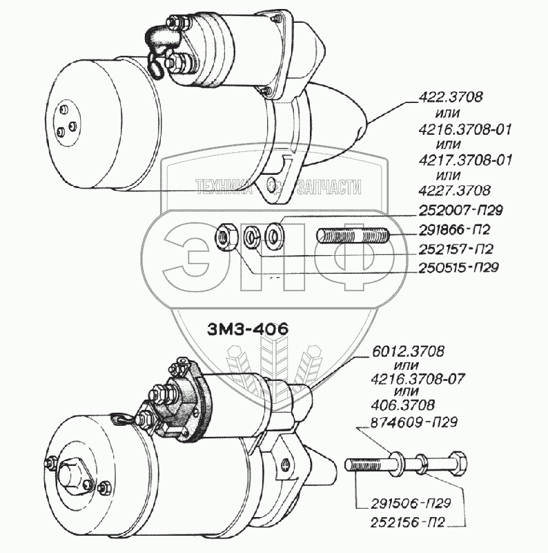 Каталог запасных частей к технике: ЗМЗ-402. Стартер двигателя