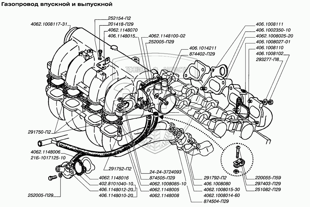 Каталог запасных частей к технике: ЗМЗ-4062.10. Газопровод впуской и выпускной