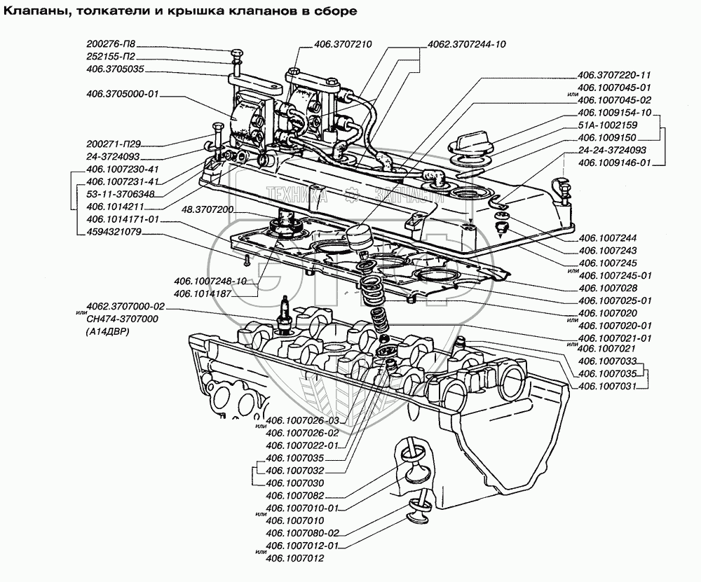 Каталог запасных частей к технике: ЗМЗ-4062.10. Клапаны, толкатели клапанов