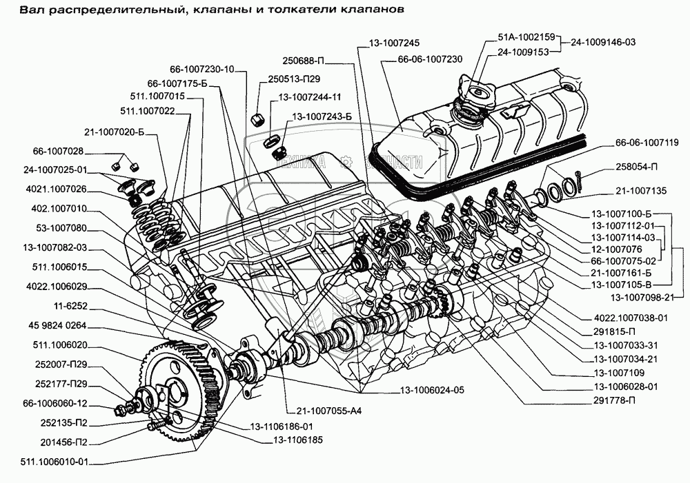 Каталог запасных частей к технике: ЗМЗ-5234.10. Вал распределительный, клапаны, толкатели клапанов