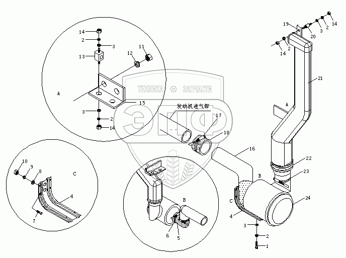 | 15 | ВР10441190070 | Кронштейн впускной трубы нижний | Нет на складе | |