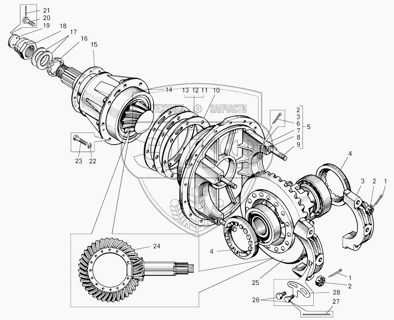 | 24 | 75231-2402006-20 | Шестерня ведущая и ведомая (комплект для запчастей) | Нет на складе | |