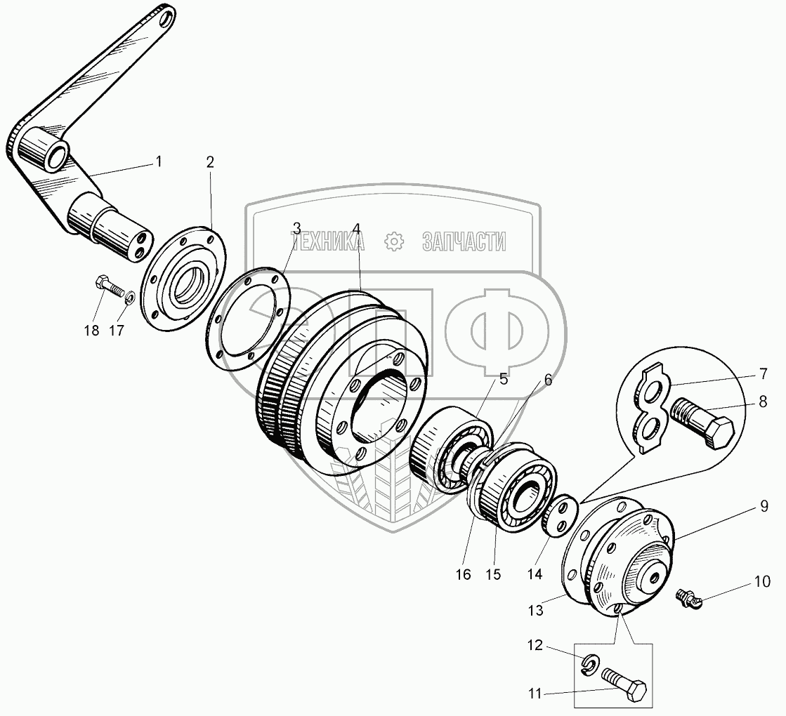 Каталог запасных частей к технике: БелАЗ 7547, 75473. Ролик натяжной;Belt idler