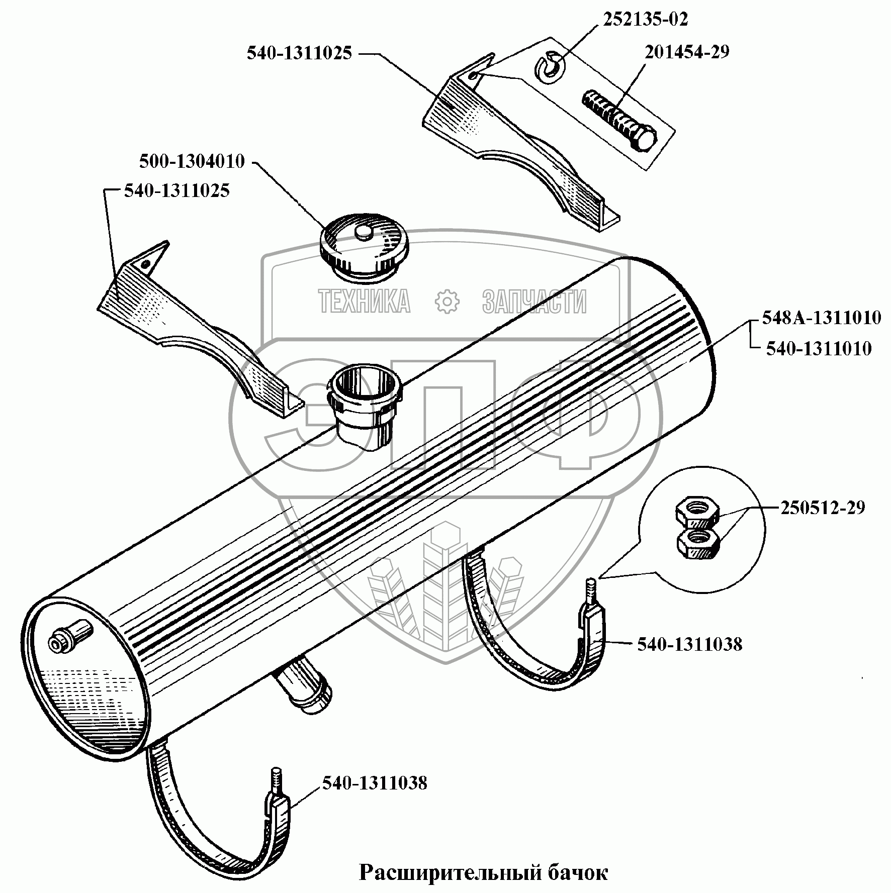 Каталог запасных частей к технике: БелАЗ-540А. Расширительный бачок