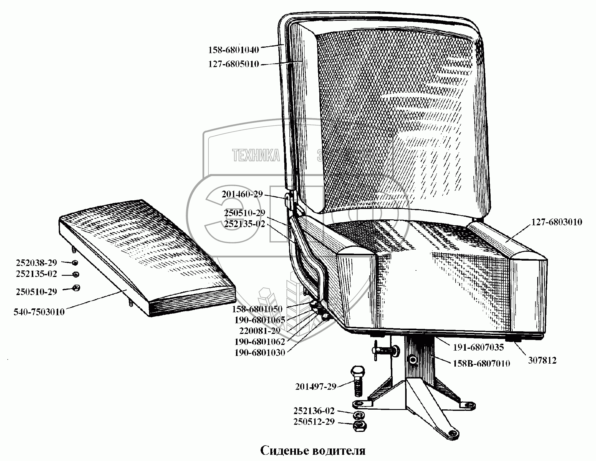Каталог запасных частей к технике: БелАЗ-540А. Сиденье водителя