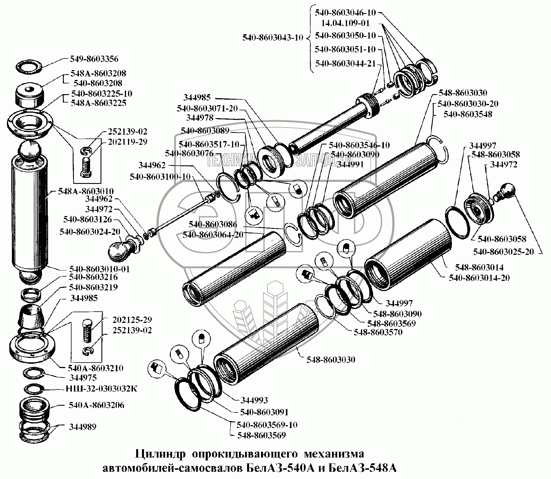 Каталог запасных частей к технике: БелАЗ-540А. Цилиндр опрокидывающего механизма