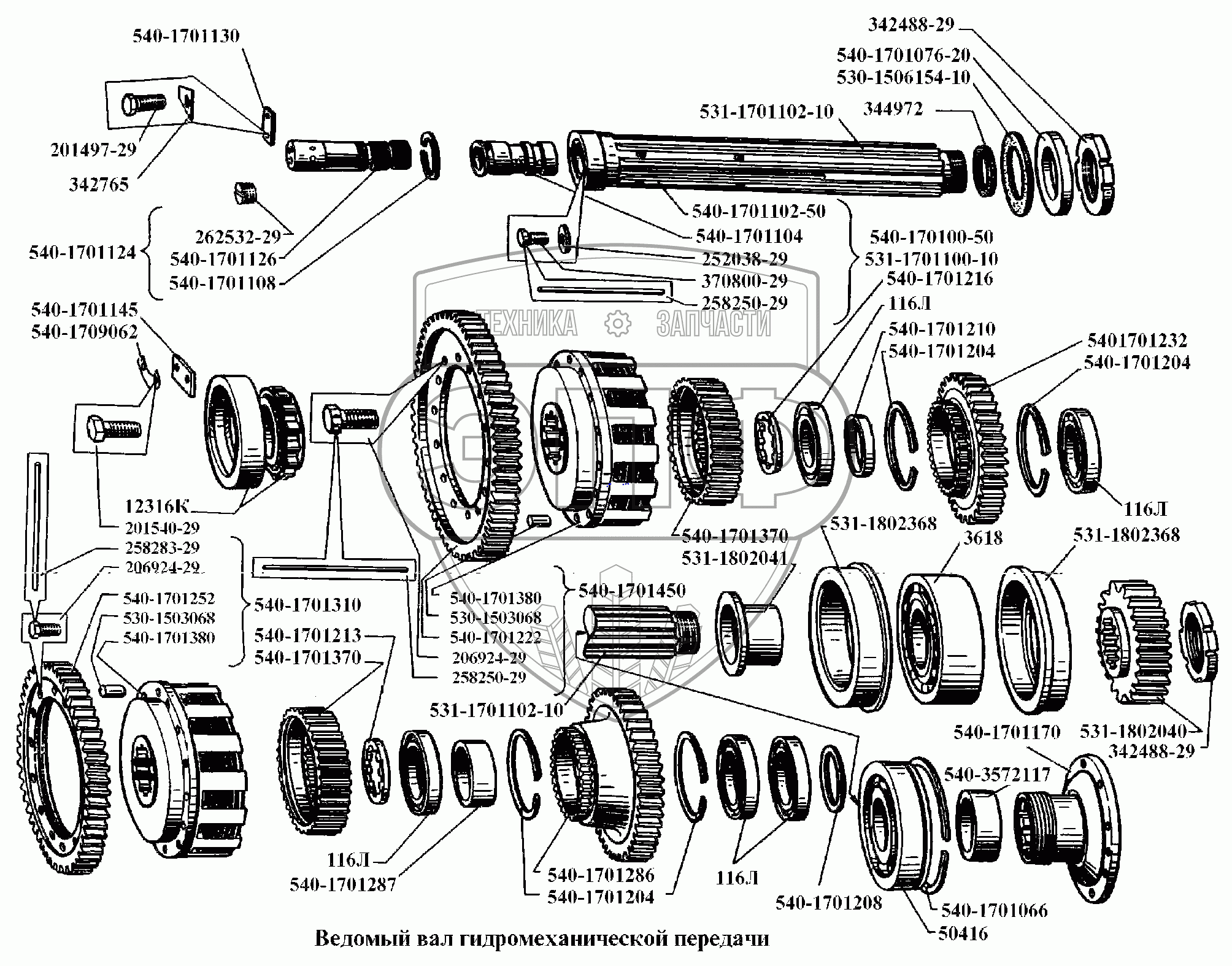Каталог запасных частей к технике: БелАЗ-540А. Ведомый вал гидромеханической передачи