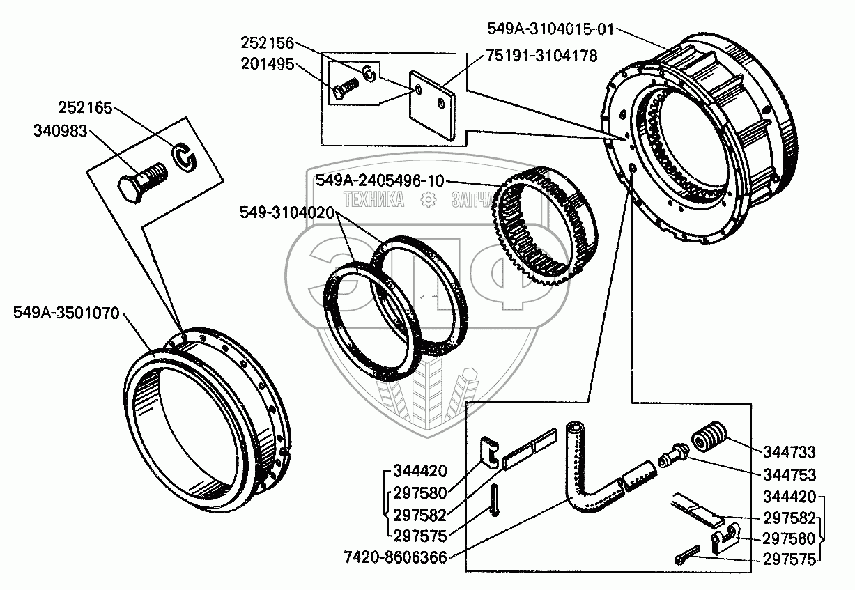 Каталог запасных частей к технике: БелАЗ-7512. Ступица заднего колеса БелАЗ-7549