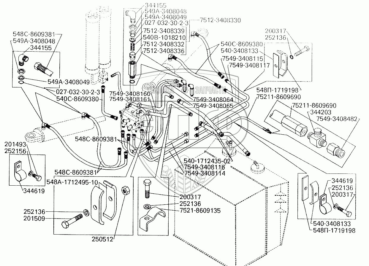 Каталог запасных частей к технике: БелАЗ-7512. Трубопроводы рулевого управления БелАЗ-7549