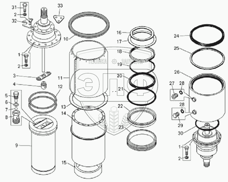 Каталог запасных частей к технике: БелАЗ-75131. Цилиндр подвески задний