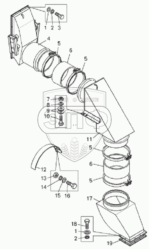 Каталог запасных частей к технике: БелАЗ-75131. Установка всасывающих воздухопроводов