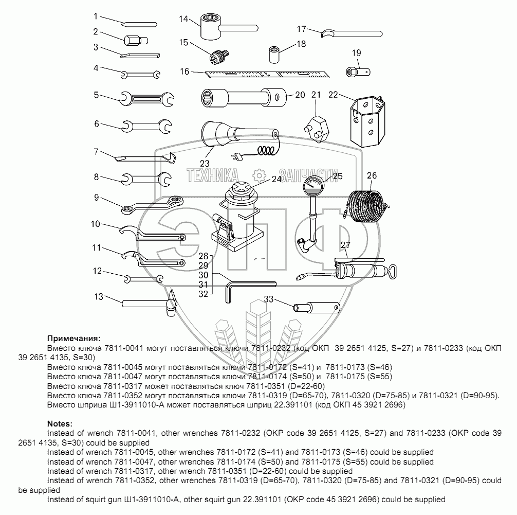 | 22 | 7540-3901114 | Ключ гайки крепления реактивной штанги | Нет на складе | |