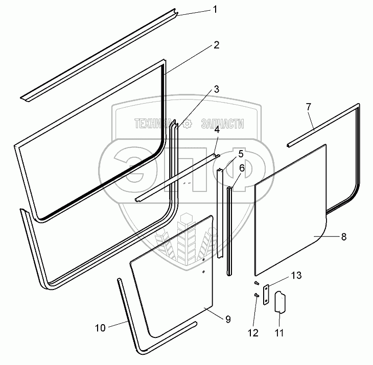 | 8 | 7555В-5403082 | Стекло окна боковины неподвижное | Нет на складе | |