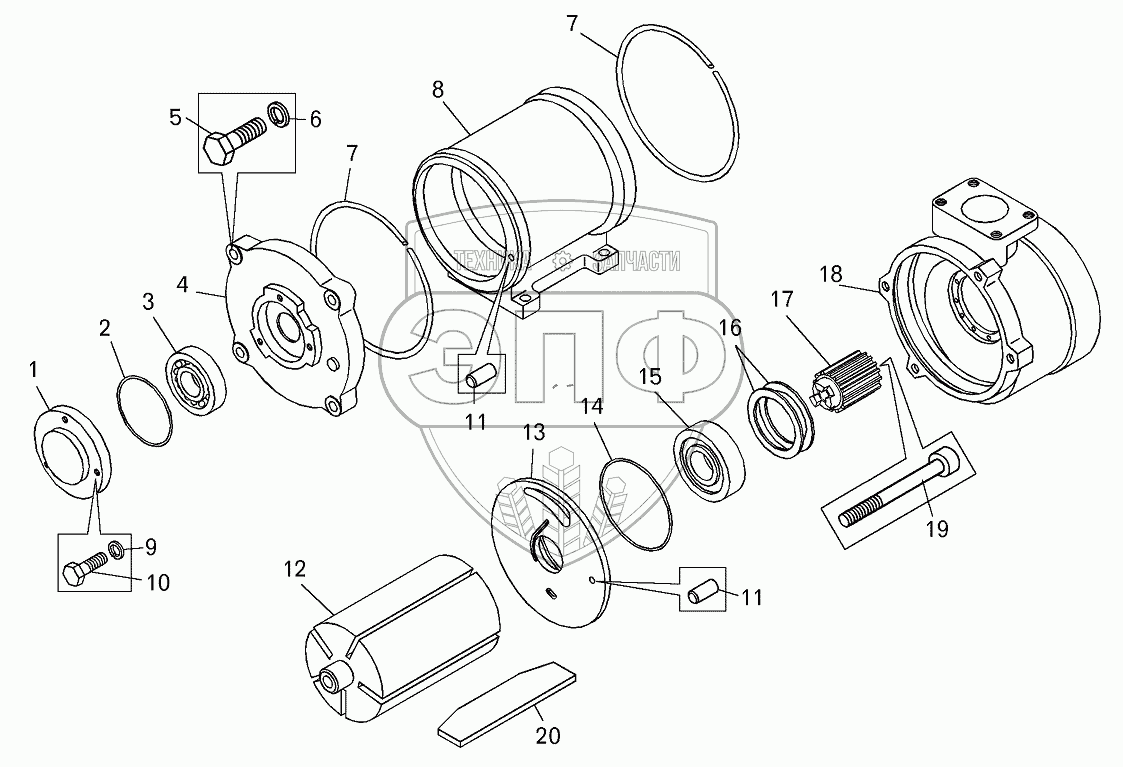 Каталог запасных частей к технике: БелАЗ-75131. Пневмодвигатель (7549-1026100)