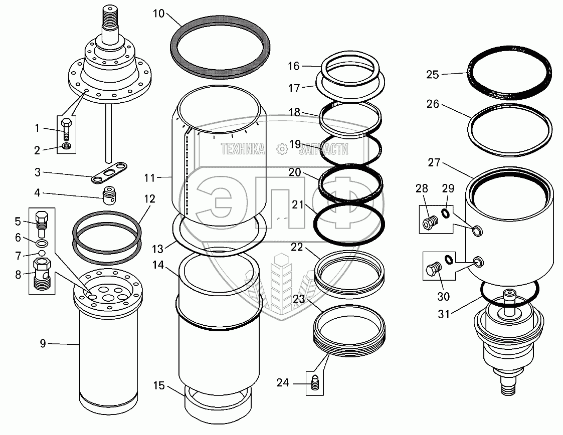 Каталог запасных частей к технике: БелАЗ-7513. Цилиндр подвески передний