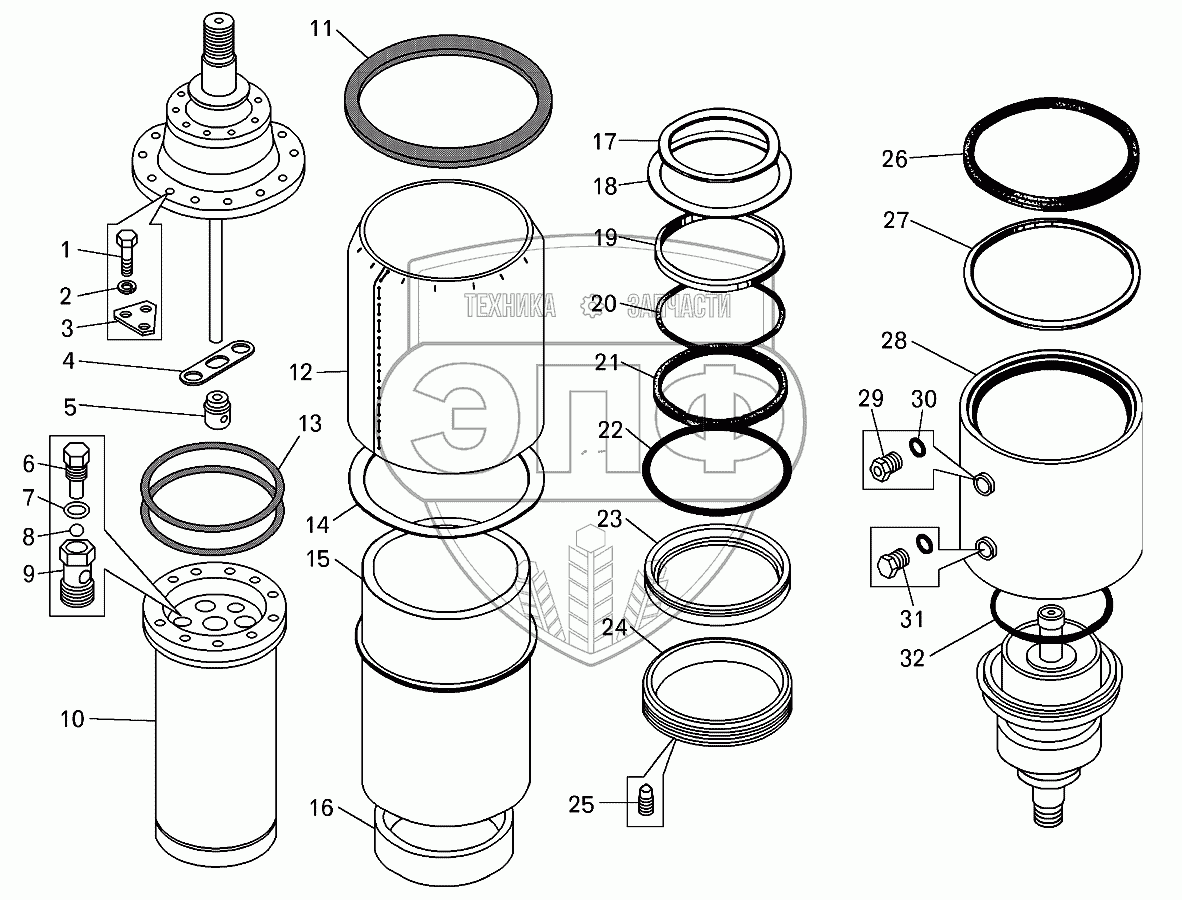 Каталог запасных частей к технике: БелАЗ-7513. Цилиндр подвески задний