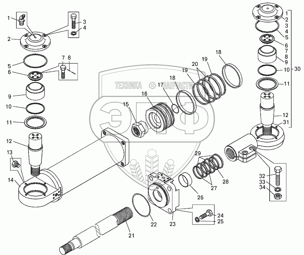 Каталог запасных частей к технике: БелАЗ-7513. Цилиндр поворота