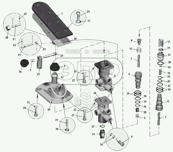 Каталог запасных частей к технике: БелАЗ-75306. Кран управления тормозами