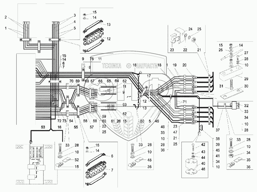 Каталог запасных частей к технике: БелАЗ-75306. Монтаж силовых проводов на шасси
