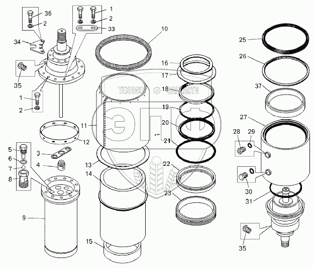 Каталог запасных частей к технике: БелАЗ-75306. Цилиндр подвески