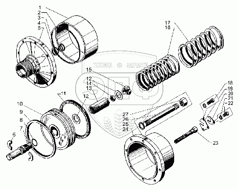 Каталог запасных частей к технике: БелАЗ-75306. Цилиндр тормозной