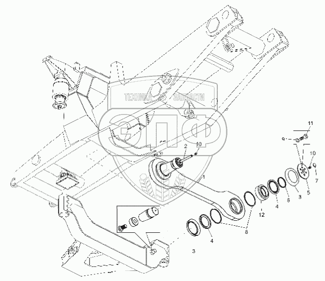Каталог запасных частей к технике: БелАЗ-75306. Установка поперечной штанги передней подвески