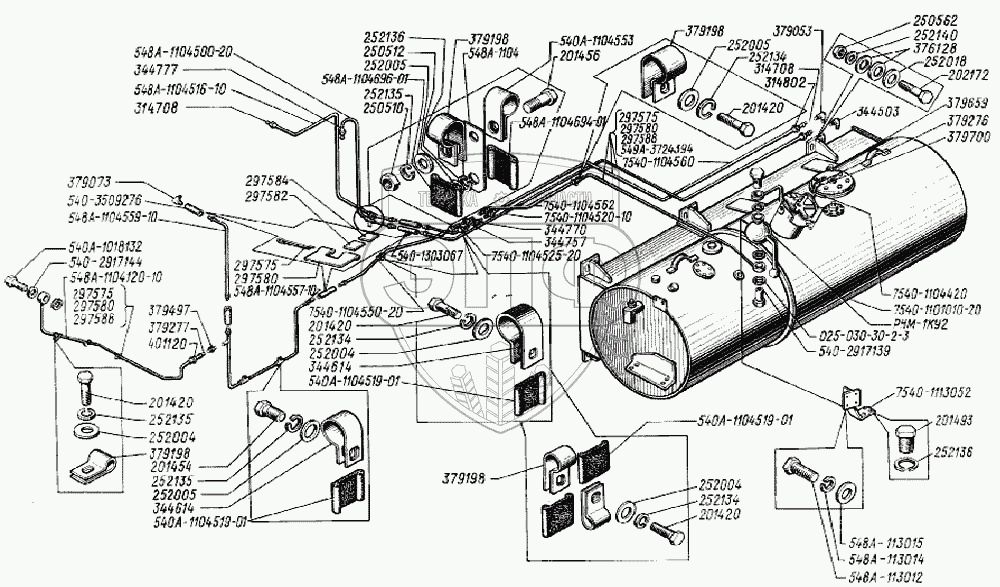 Каталог запасных частей к технике: БелАЗ-75401. Топливные баки и топливные трубопроводы